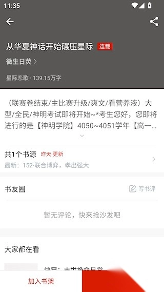 2、喜欢的小说可以加入书架,点击免费阅读后提供多种书源选择;
