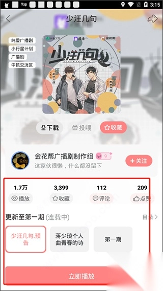 4、在播放广播剧的同时不仅可以看到字幕,还可以在上分看到小伙伴们发送的弹幕;