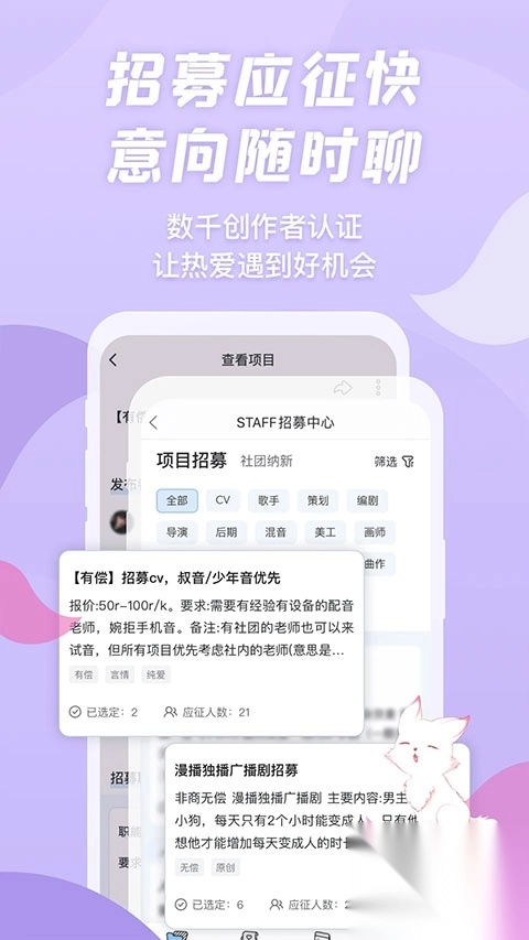 我们欢迎各位有才华的漫播剧创作者入驻漫播,可带个人/社团介绍及作品链接投递至官方邮箱,官方工作人员将为您开通后台入口,优质作品可享受站内推荐、微博推广等资源福利。