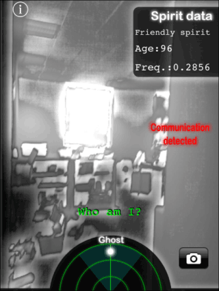 2、只要你打开软件,放置在空中,画面上就会出现鬼魂搜索雷达,一旦附近有鬼魂靠近,它就会发出警告和影像。