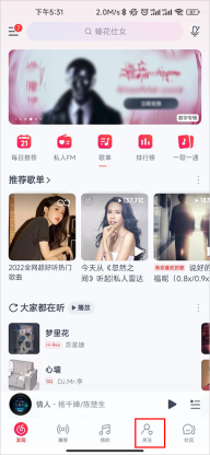 1、打开【网易云音乐】,点击下方【关注】按钮至动态页面。