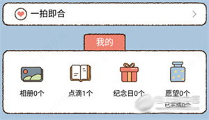 1、时光--包含相册、点滴、纪念日、愿望清单四大功能,每天使用四大功能将获得相应的爱心鼓励哦!