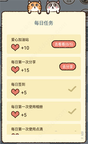 想要快速获取爱心,那么点击右上角的每日任务,里面的任务是获取爱心的关键哦。