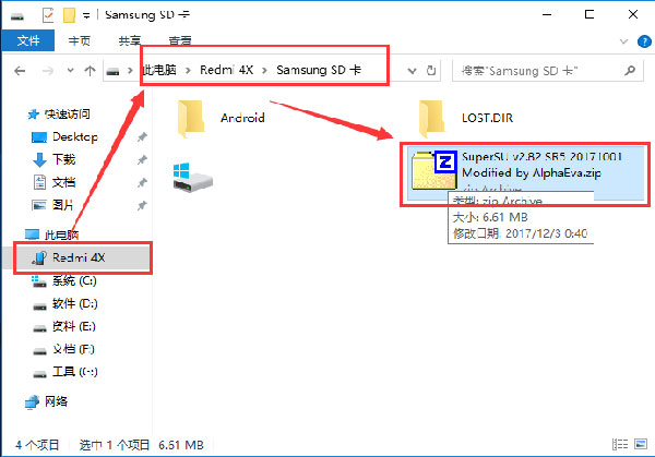 1、首先,将超级授权 SuperSU Pro 的刷机包(请注意是 .zip 格式)放到你的手机内存卡或存储空间中。
