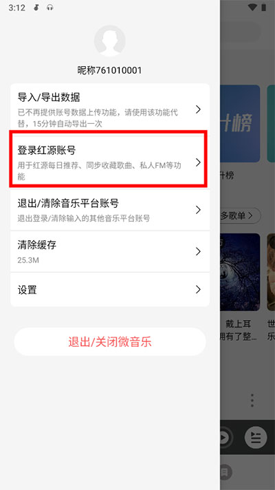 用于红源歌单导入、红源每日歌曲/歌单推荐、红源私人FM、同步收藏歌曲等