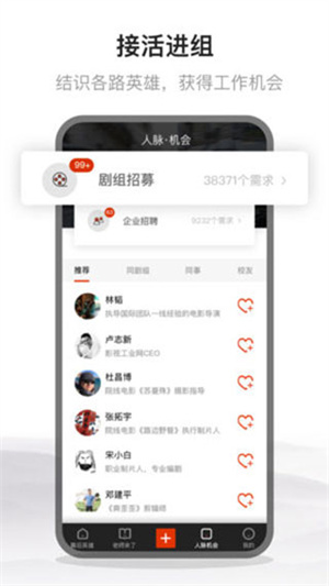 3、众多剧组招募信息和企业招聘信息等你来查。借助平台资源和人脉推荐,你将获得丰富的工作机会。