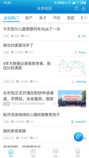 在水木社区手机版中为用户提供各种不同领域的知识论坛,用户可以关注自己喜欢的论坛,随时查看、发布各种各样的图文帖子。