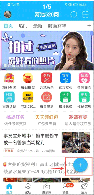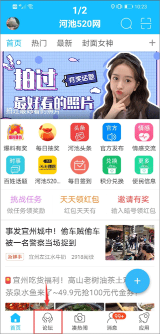 1、头条醒目推荐,打开软件随时浏览,随时都能关注河池最新动态。
