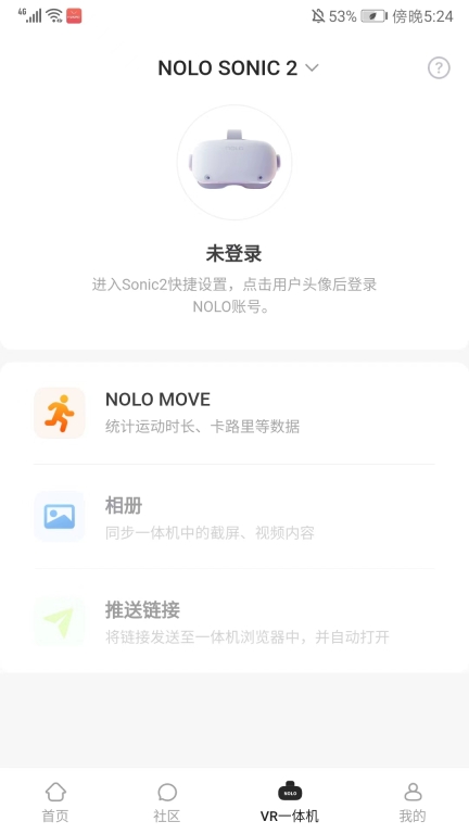 1、启动nolo助手安卓版,进入主界面后,您会发现有首页、社区、VR一体机和个人中心等栏目。在首页上展示了多种多样的游戏应用,用户可以根据个人喜好进行选择或搜索。以【芒果幻城】为例,