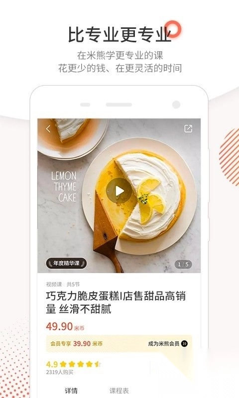 米熊APP,一个聚焦于美食领域的学习交流社区。平台上有着数量庞大的专业课程,内容覆盖全球各式各样的美食。它会按照季节变化,为用户推荐特色食谱,助力大家每日三餐都能品尝到不同美味。米熊APP不仅支持视频在线教学,还具备缓存功能,方便用户离线学习。在这里,用户还可以与来自海内外的名师以及网红达人进行互动。其互动圈子里汇聚了众多美食爱好者,大家纷纷在此分享经验。除此之外,用户还能够在米熊APP上选购食材和厨具,参与丰富多样的线上线下活动,并有机会赢取奖品。米熊APP无疑是广大美食爱好者提升厨艺、交流分享的绝佳平台。