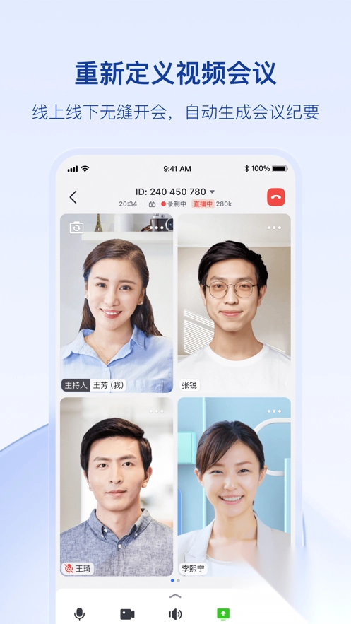 1、视频会议具备以下特性:可实现1000方稳定接入,屏幕与文档共享极为便捷。不仅开会过程流畅,还能自动生成会议纪要。