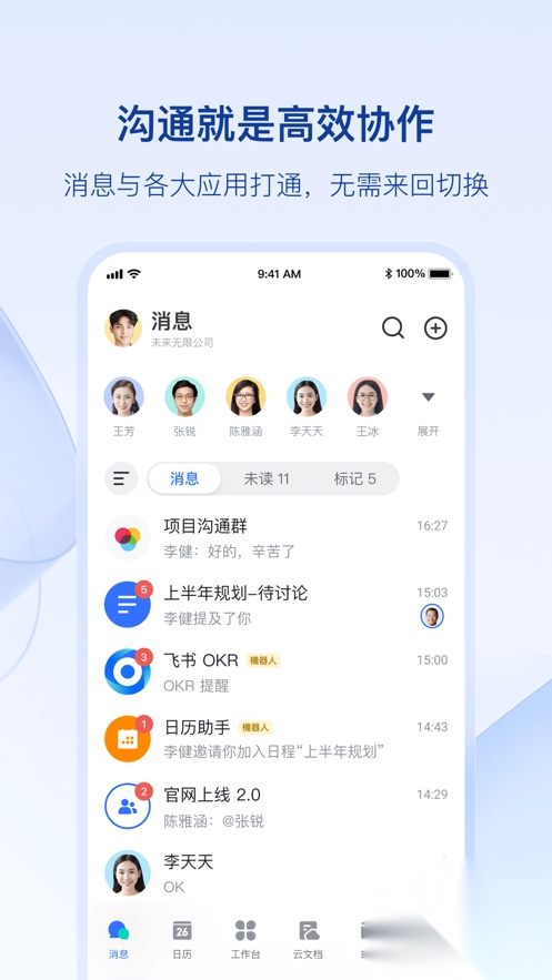 6、- 飞书“无缝打通”即时沟通、视频会议、日历、云文档、OKR 等强大功能与开放应用,彻底告别零散的多套系统和割裂的协作体验!
