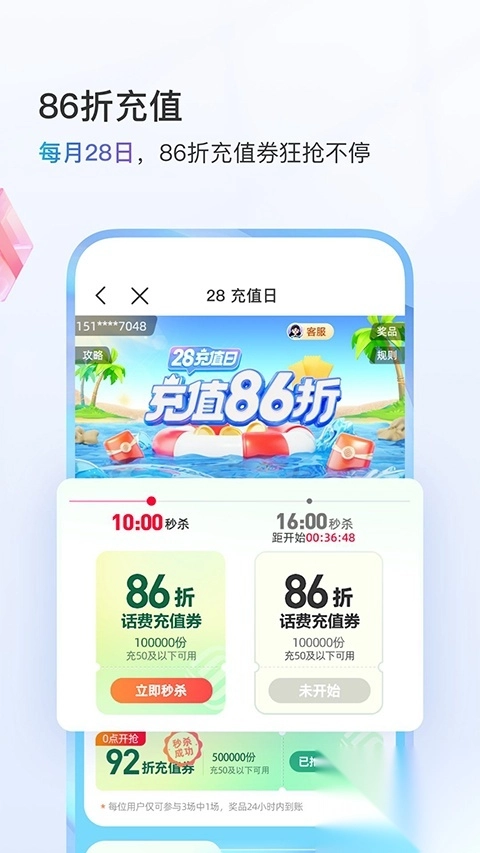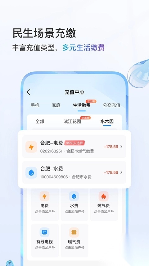 实时快速进行话费充值、账单交费,并同时支持银行卡、充值卡充值话费,简单安全无需等待。