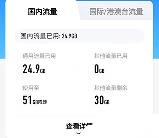 2、点击就会进入数据详情页面,查看到数据的详细使用情况,点击查看详情就能看到自己的流量套