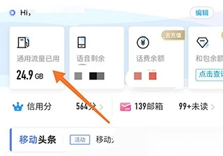 1、首先打开中国移动APP,进入软件之后,在首页就可以看到自己的流量使用状况;