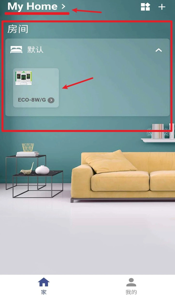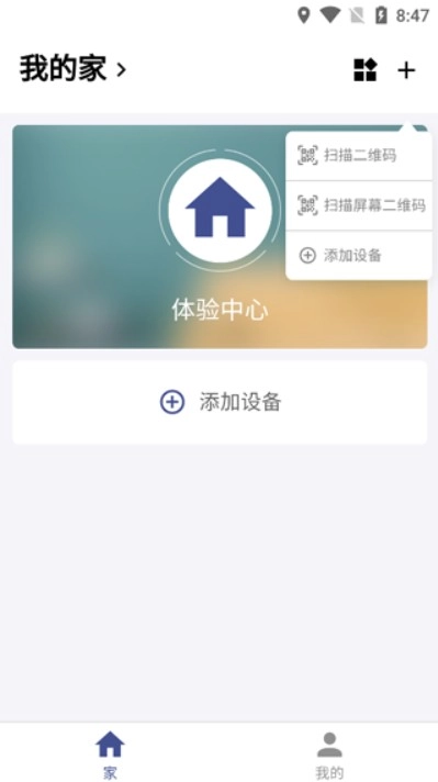 1. 打开 App 进入“我的家”页面,点击右上角“+”按钮添加新设备。