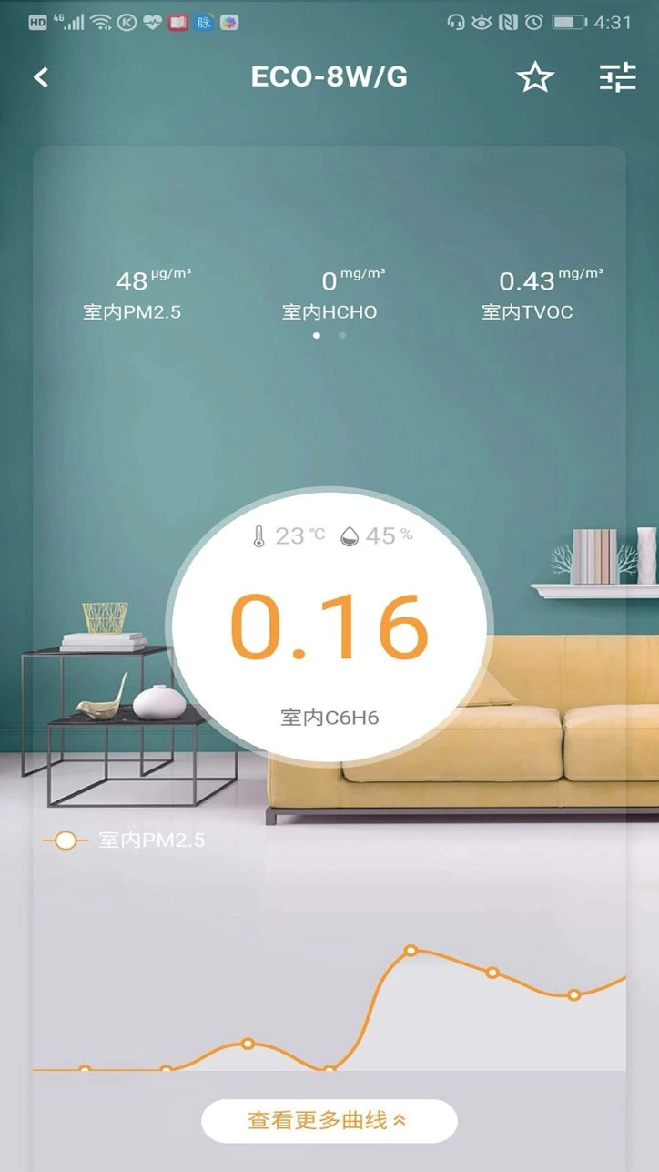 5. 30天空气质量数据变化状况曲线趋势图表,为您改善居室环境空气质量、调整居室物品、养成良好生活习惯提供了科学的理论依据。