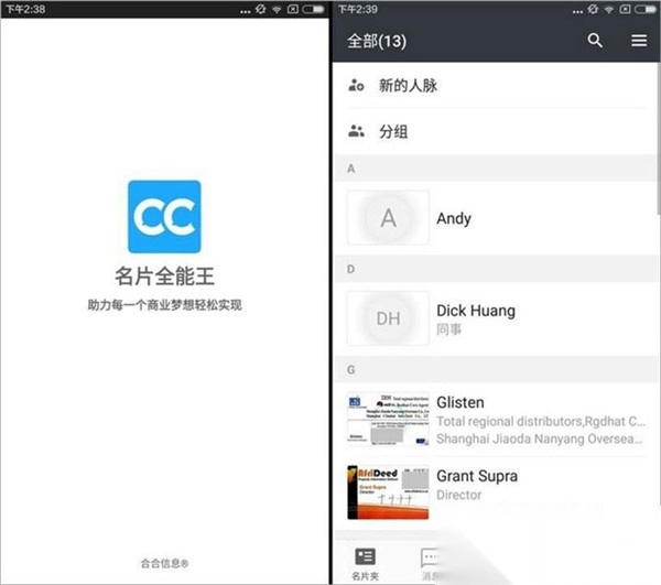 名片全能王app专为商务人士拓展人脉打造。在此,你能轻松获取众多企业信息,结识知名商业大佬,并与他们便捷取得联系。至于对方是否回应,这并非小编所能左右。另外,现在绑定我们的app账号,还能提升用户支付宝芝麻信用分。想让自己成为知名人士吗?赶快下载使用吧!