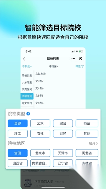 整合本省所有招生高校及专业信息,省去网络搜索、翻查资料、多方咨询的麻烦,快速筛选匹配个人条件的理想院校。