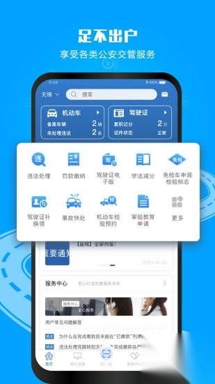 2.机动车业务:预选机动车号牌,补换领机动车行驶证,补换领检验合格标志,机动车检验预约。