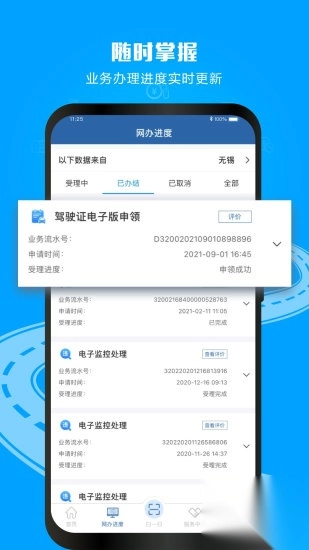 1.驾驶证业务:期满换证,遗失补证,延期提交身体条件证明,超龄换证,延期换证,考试预约,损毁换证,延期审验,取消预约。