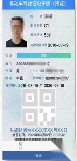 电子驾驶证包括正页和副页两部分组成。正页包括驾驶证基本信息、电子证生成时间、用于验证信息的二维码和一维码等内容;副页主要包括驾驶人住址、发证机关、驾驶记录以及准驾车型代号规定等内容。
