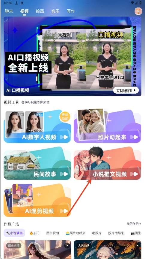 2、点击选择【小说推文视频】