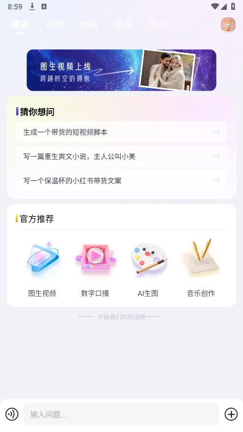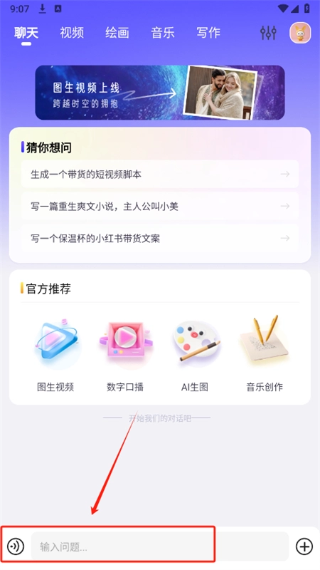 3、于聊天页面处,输入问题,软件将迅速为您给出解答。