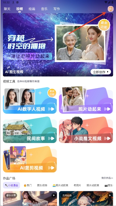 2、开启软件,进入首页,于视频页面能够瞧见丰富多样的视频创作功能。