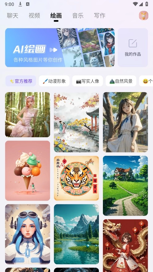 4、轻点“绘画”选项,在相应位置输入对图片的描述,接着从多种风格中挑选自己心仪的图片风格,最后点击“立即创作”,便可轻松开启创作之旅。