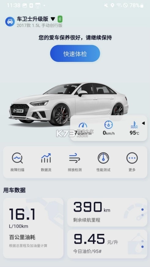 该软件可以提供给用户汽车的状态、汽车的毛病、行驶的习惯、行驶的里程、耗油量的计算,可以让用户对车子的行驶状况进行实时的监控。同时还可以给用户一个GPS的导航,在任何时候都可以看到自己的车子的具体位置,是一款非常方便的软件,对有车一族的朋友来说更是一个宝贝。
