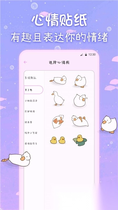 1. 海量主题皮肤,包括可爱动物、纯色系列、唯美图片等,让你的日记本多姿多彩。