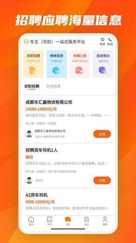 1、用户可以随时随地学习管理订单和运单车辆,操作简单易上手。