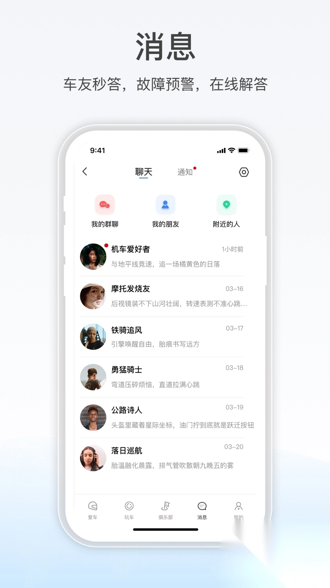 3、在摩友社群中积极互动,分享骑行过程中的精彩故事、心爱的摩托车照片,以及旅途中的所见所闻。