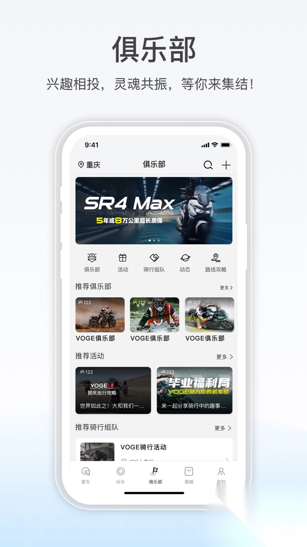 3、在俱乐部有很多不同的活动,还可以进行骑行组队等操作。