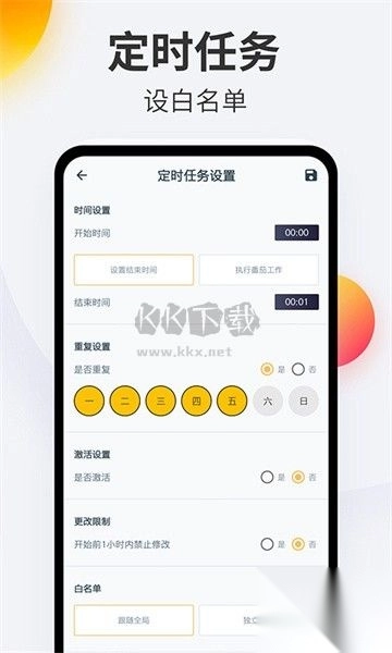 4. 白名单设定:在设备锁定期间,能够进行白名单的设置。一旦设置完成,仅允许使用列入白名单中的软件,这一功能能更有效地辅助学习与日常生活。