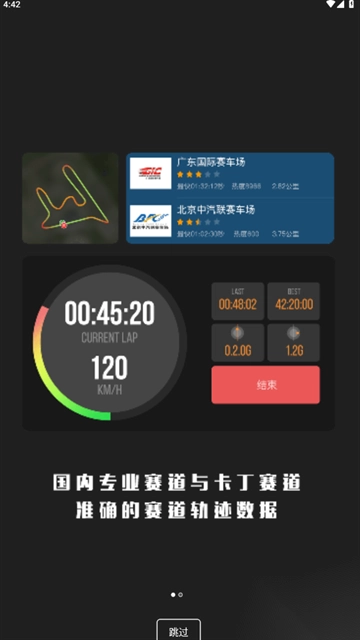 赛道模式是针对赛道而设计的测试项目,测试赛道圈速,实时轨迹分析,车辆出入弯速度,赛道分段等。