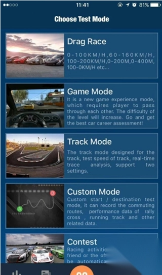 I.系统模式有:0-100Km/H、100-200KM/H、60-160Km/H、200-300Km/H、100Km/H-0、0-200m、0-400m、80-5Km/H/S几个测试项。