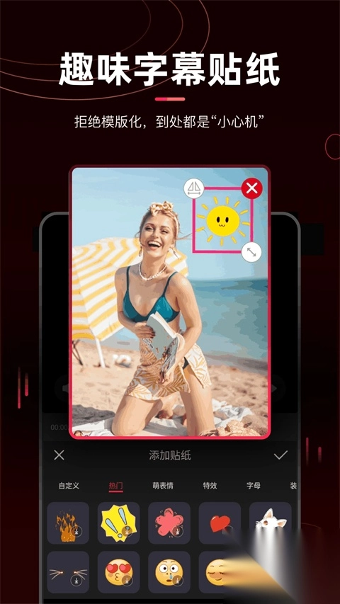 3、添加字幕灵活又省心:搞笑表情、神字幕、神解说,搭配文字,让您的视频趣味倍增。