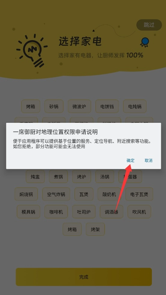 3、根据提示开启手机定位权限,确保能准确查找附近可预约的厨师资源。