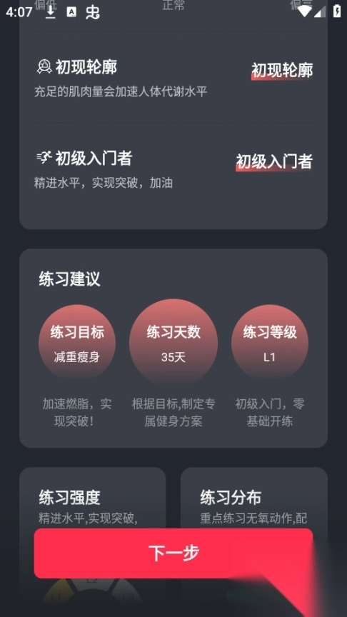 结果分析。赶快下载体验吧!1.下载安装gofit开练app,设定好计划之后,重新进入,