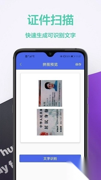 支持身份证、银行卡、护照等各种证件识别扫描,1:1生成电子复印件