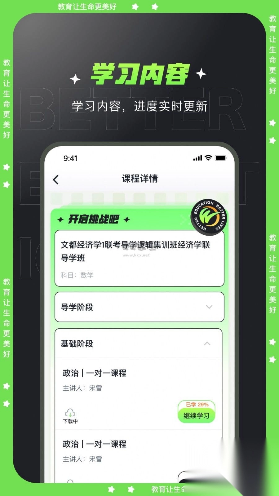 2、专为考研学员打造的学习平台,各种教学课程等都有;