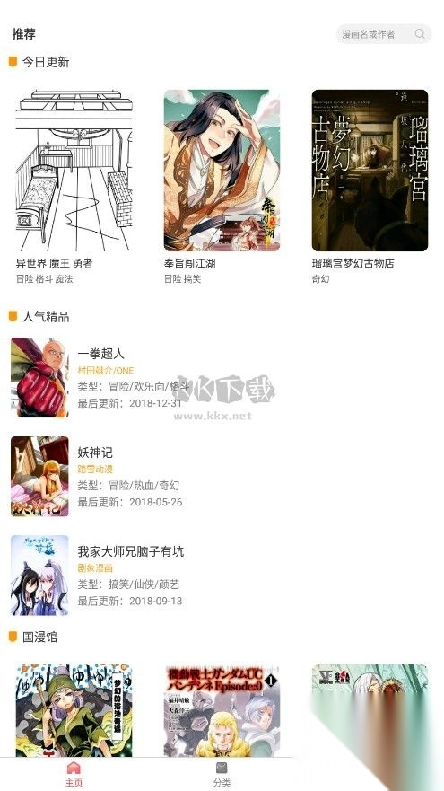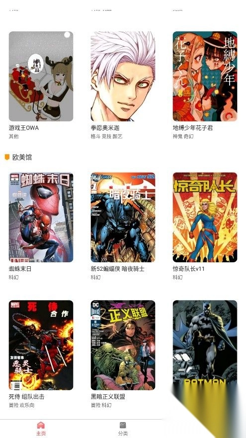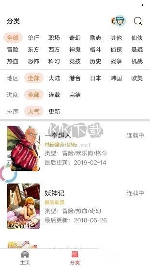 2、漫画种类丰富多样,国漫、日漫、美漫,连载漫画、完结漫画,热血漫画、暗黑漫画,以及人气改编漫画等,应有尽有,任你挑选。