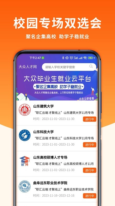大众人才网官方版专为毕业季大学生打造,通过线上与线下两种方式举办校园招聘会。平台汇聚海量公司单位及各类岗位,助力大家高效便捷地找到心仪的好工作。