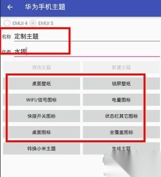 3、输入主题的名称和作者名,然后编辑设置自己喜欢的主题图标。