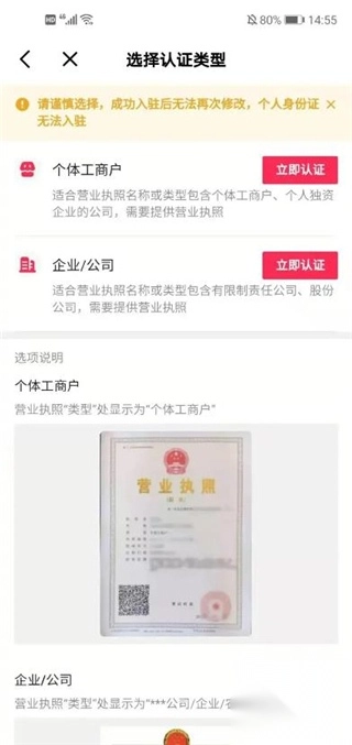 5、完成巨量引擎的授权登录后,需挑选认证类型。无论是个体工商户,还是企业/公司皆可。要是尚未办理相关执照,可预先准备好身份证照片,并确认清楚店铺名称、注册资金、股东信息等资料,随后前往当地工商局,或者通过网商云谷等第三方平台办理执照。
