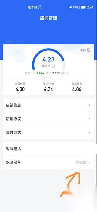 2. 接着点击底部的【保障服务】进入,能看到当前处于“未签约”状态。
