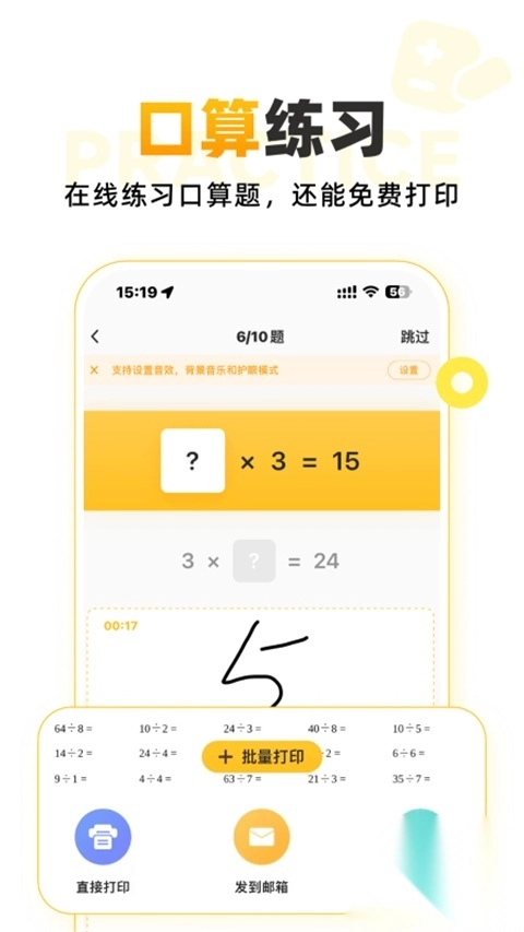5、口算练习,手写作答:口算题目覆盖小学各年龄段学生,其中口算、竖式及单位换算均可手写作答;