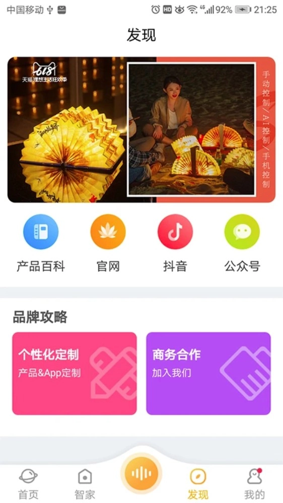 3. 进入「发现」页面,可浏览产品百科、品牌活动,也能跳转官网或抖音了解更多资讯。